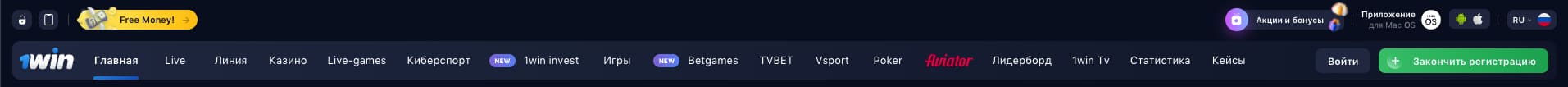1Вин – это лицензированная букмекерская контора. Здесь можно делать ставки на спорт или киберспорт. Кроме этого, на сайте множество азартных развлечений онлайн: